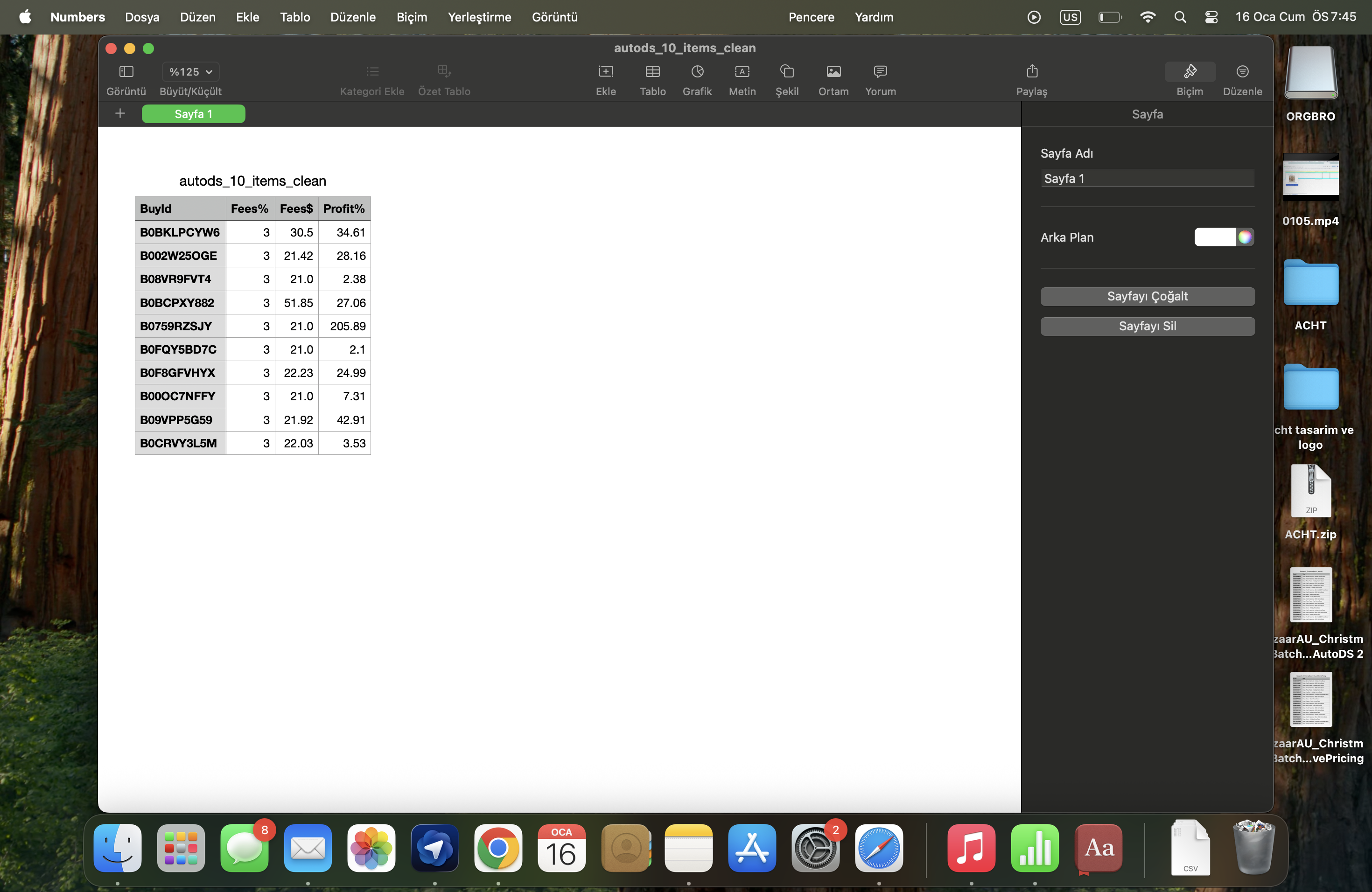 Our business model requires uploading hundreds or thousands of products per month, where each product has its own shipping cost (Fees $) and profit margin (Profit %).