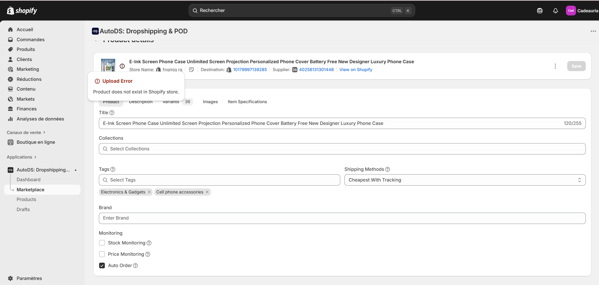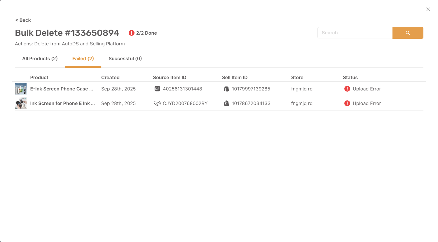 I previously had a product listed in my Shopify store through AutoDS, but I accidentally deleted it. When I try to re-upload the same product, I keep getting an “Upload Error – Product does not exist in Shopify store” message.